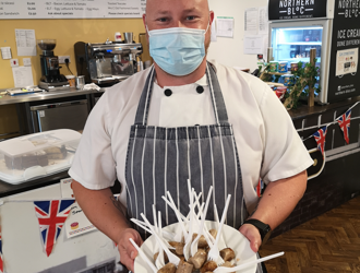 Finally, it wouldn’t be British Food Fortnight without an Afternoon Tea and Cake tasting session! Stephen baked and sampled three different cakes for residents to try:
