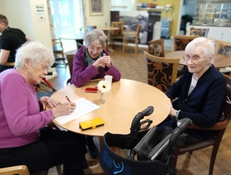 It wouldn't be Easter at the Cuttings without a visit from the Quizmaster, Andrew Bull. Tenants and staff can get involved in the quiz and Andrew always brings along some generous prizes! This year there was a Sit-Com music round which brought memories to many tenants (and staff!)