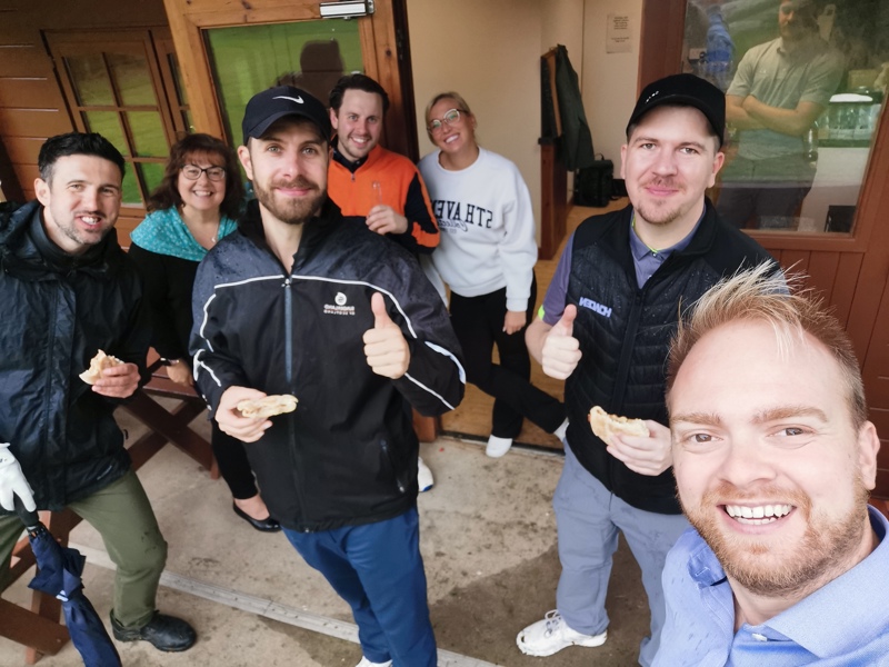 Arriving at the golf club in the morning, teams were optimistic about the storm holding off long enough to finish their games. As they departed the club house, bacon sarnies in hand and golf clubs ready, the first spots of rain were starting to appear.