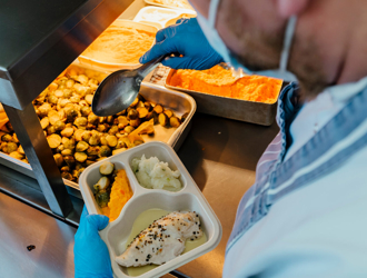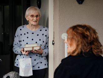 The food was package and stored in tremendous time, perfectly aligning with the volunteers arriving to collect their elected delivery box. The team was out in full force, with 15 different rounds being delivered altogether. Each chef had the privilege of joining some of our team and volunteers, including a special trip made by our Chief Executive, Sue Cawthray, who escorted Stephanie Moon to visit an ex-volunteer, Reg, who now receives the meals himself.